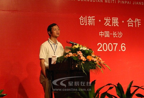 尹鸿开宗明义的指出,中国广电品牌构建的现状“可以使用的品牌资源非常有限,电视所处的环境特别”,详细得表示在-中国电视的一仆三主-中国电视的条块分割-中国电视的工业链不贯通-中国电视渠道为王的危机-中国电视优势内容稀缺-中国电视的无序同质竞争-新媒体竞争等等因为脚底下不能动,但是,同质节目越来越多,差别性越来越小,没法生存,这也是广电业面临的危机,虽然发铺很快最凸起的例子就是湖南的《超级女声》和美国的《美国偶像》,美国今年做到第六季了,而且收视率越来越高,这不得不说是一个问题