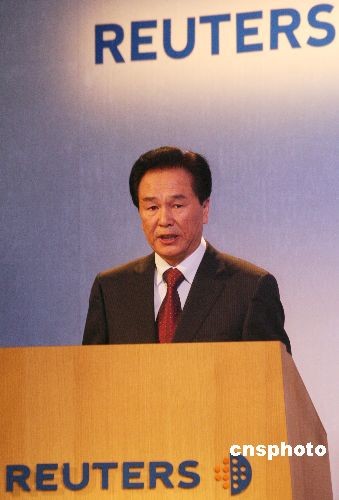 图为中国国务院消息办副主任蔡名照作宗旨演讲