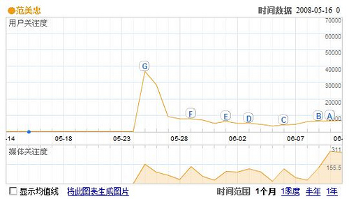而对照“范美忠”的搜索曲线,倒是更符合“网络事件”的搜索规律-